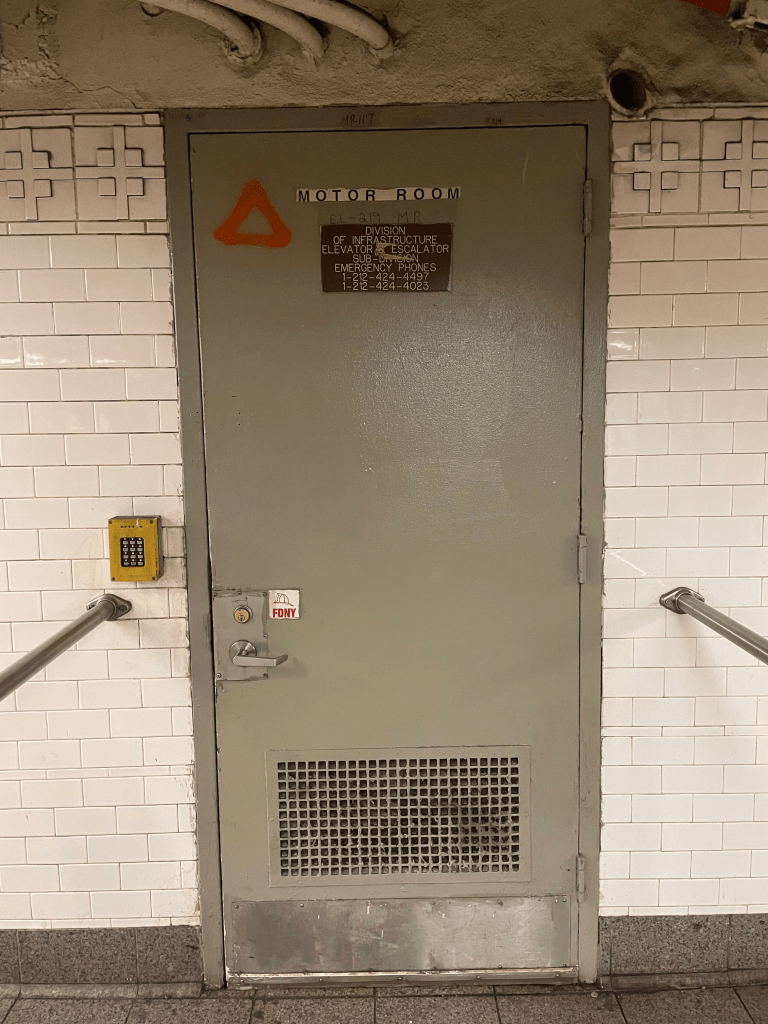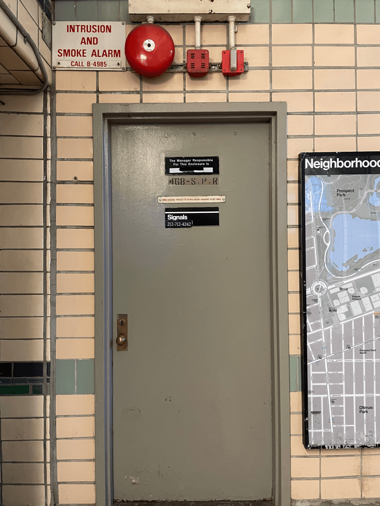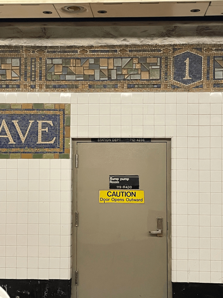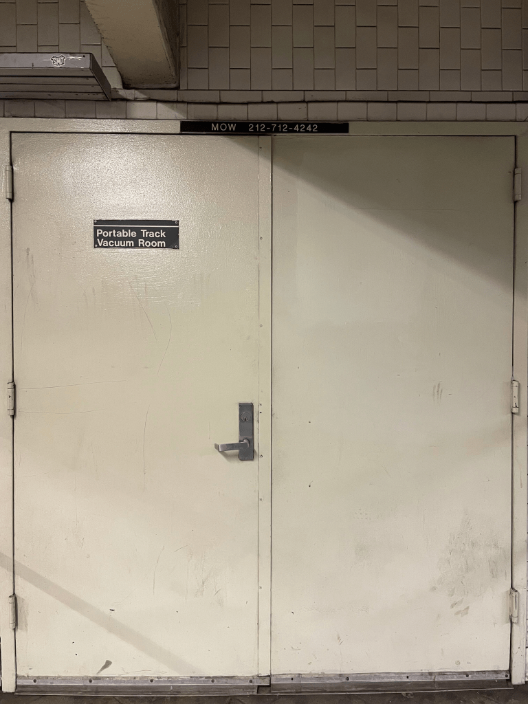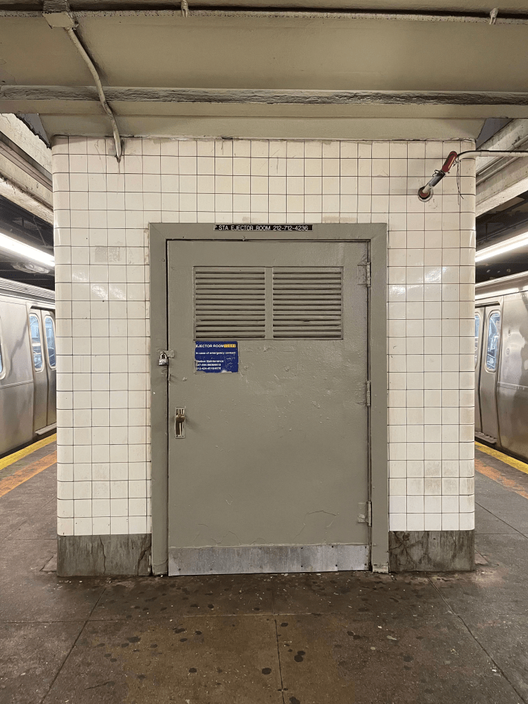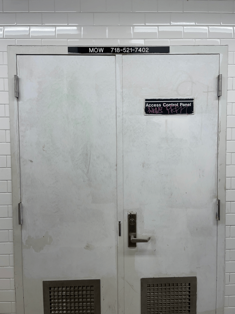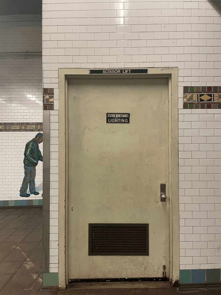 These doors trace the years and can be easy to miss. Once I noticed the first odd door, I began looking everywhere. I appreciate the transit system’s insistence on naming. While the rooms within each subway station are obscured from public view, their functions are duly announced in whichever font was standard at the time of their construction. They denote place or something real. It is a twisted courtesy. Next time, pause before the quiet gift of an inscription. Do its words mean anything to you? I will keep looking. This will never end.